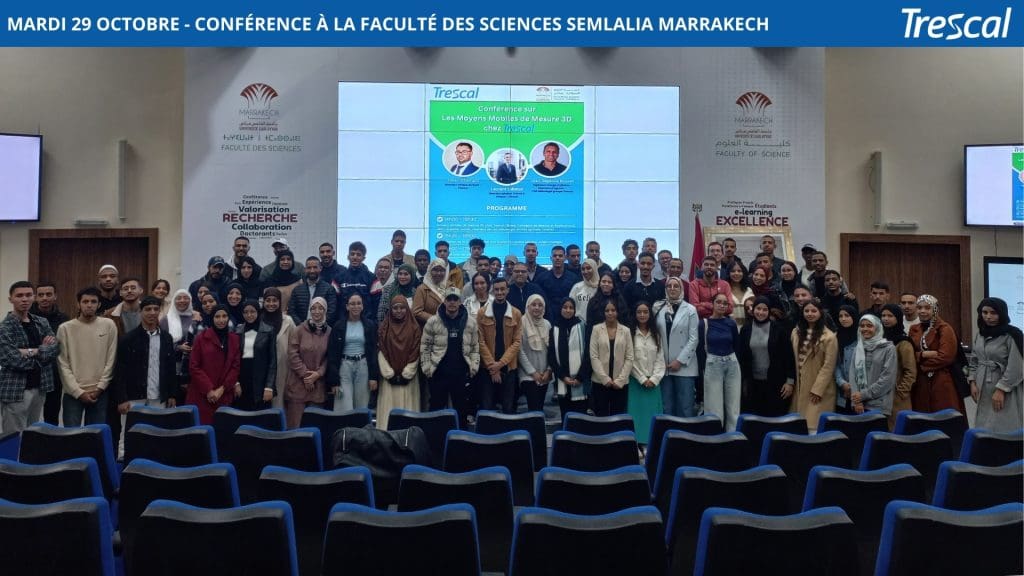 Hier après-midi, Julien Champin – Directeur de Trescal Afrique du Nord, Jean-Baptiste Ducret – Ingénieur Chargé d’Affaires & Directeur de l’Agence de Nantes chez CML Métrologie et Laurent Labatut – Directeur Général de Trescal France & Afrique ont animés une conférence sur les Moyens Mobiles de Mesure Tridimensionnelle (3D) à destination des étudiants du Master Ingénierie de la Métrologie et de la Qualité de la Faculté des Sciences Semlalia Marrakech !